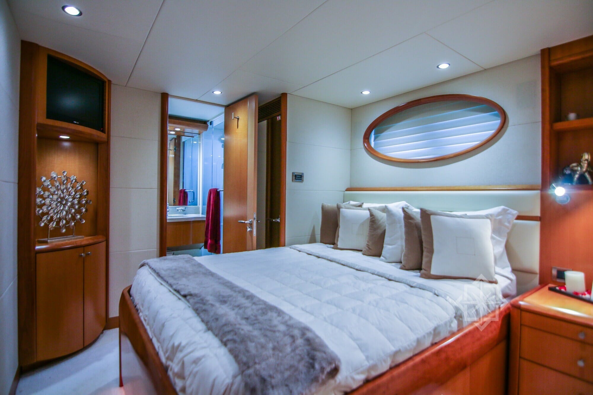 Layout sleeps up to 8 guests in 5 rooms, including a master suite, 1 VIP stateroom, 1 double cabin and 1 twin cabin. She is also capable of carrying up to 3 crew onboard to ensure a relaxed luxury yacht experience. This boat is ideal for a large group on a term charter.