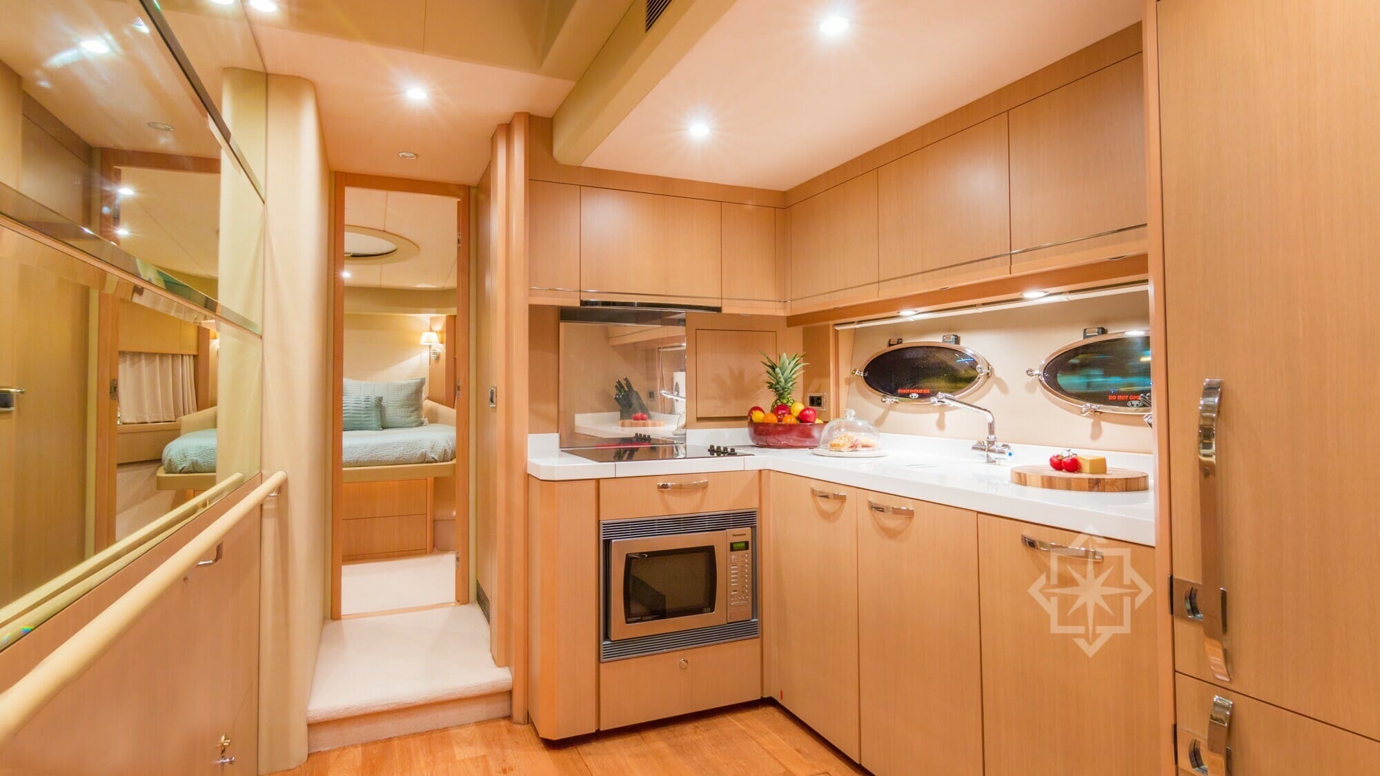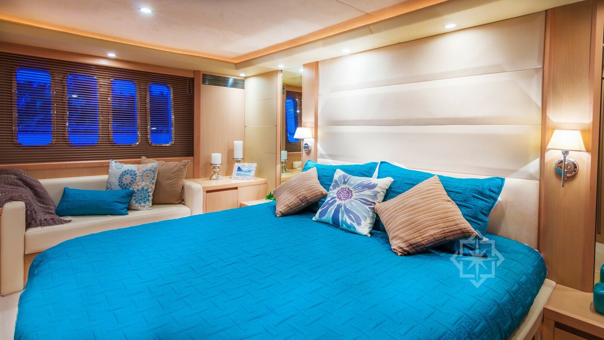Feel the wind in you hair with her upgraded twin Caterpillar engines which lets her go up to 40 knots! For water fun, she has a submersible platform and two garages which come with a jet tender and jet ski.