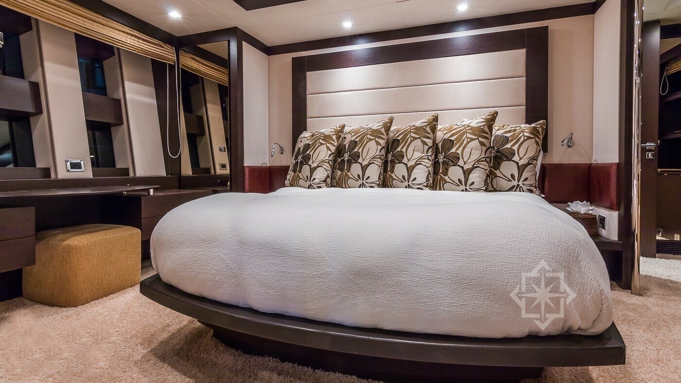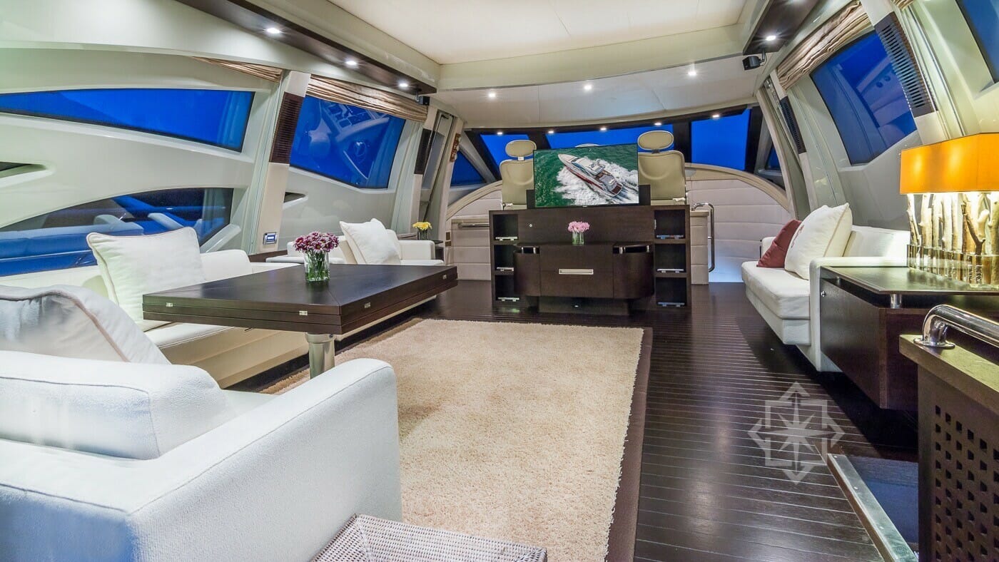 We offer a range of yacht rental prices and this super luxury motor yacht is a dream come true for a day charter or longer journey sailing around the sunny South Florida waters, Miami and nearby Bahamas and the Florida Keys. Her interior configuration has been designed to comfortably accommodate up to eight guests overnight in four air conditioned cabins comprised of a master suite, a VIP stateroom, and two twin cabins. She can carry up to four crew members on board to ensure a relaxed and exciting voyage.